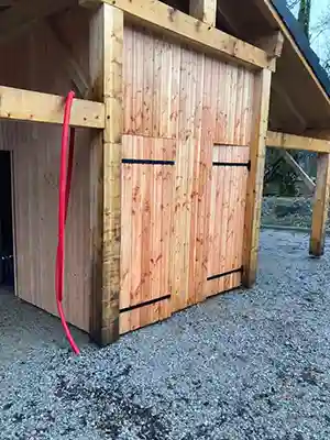 ROBINET EXTÉRIEUR – il y a un robinet et un tuyau à côté du jacuzzi. Le tuyau est suffisamment long pour atteindre l’abri de voiture et nettoyer les vélos.